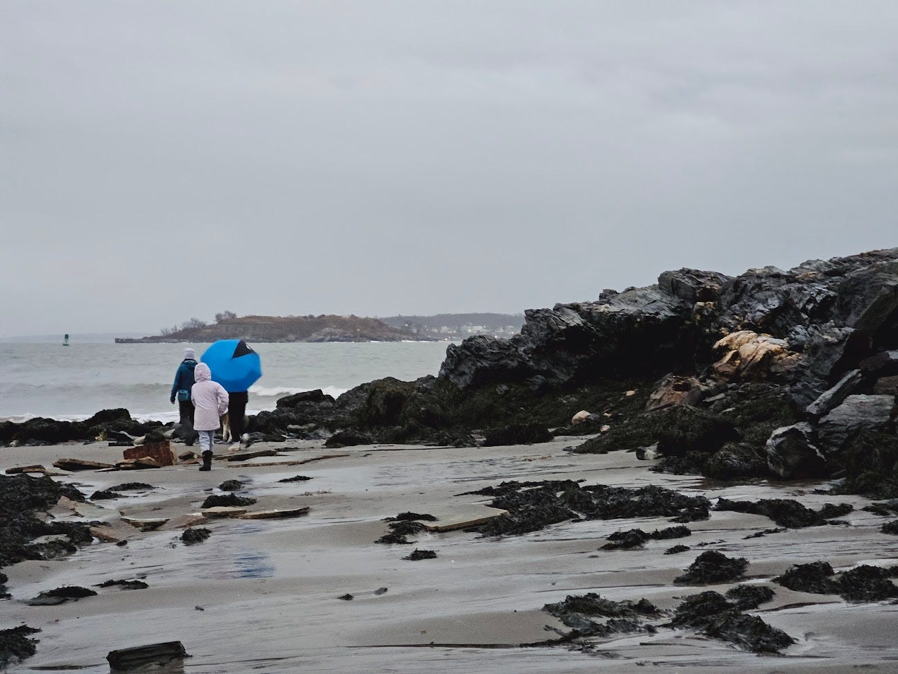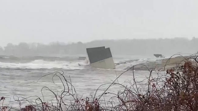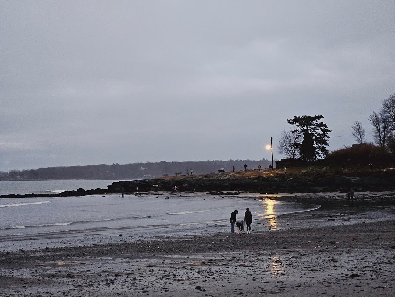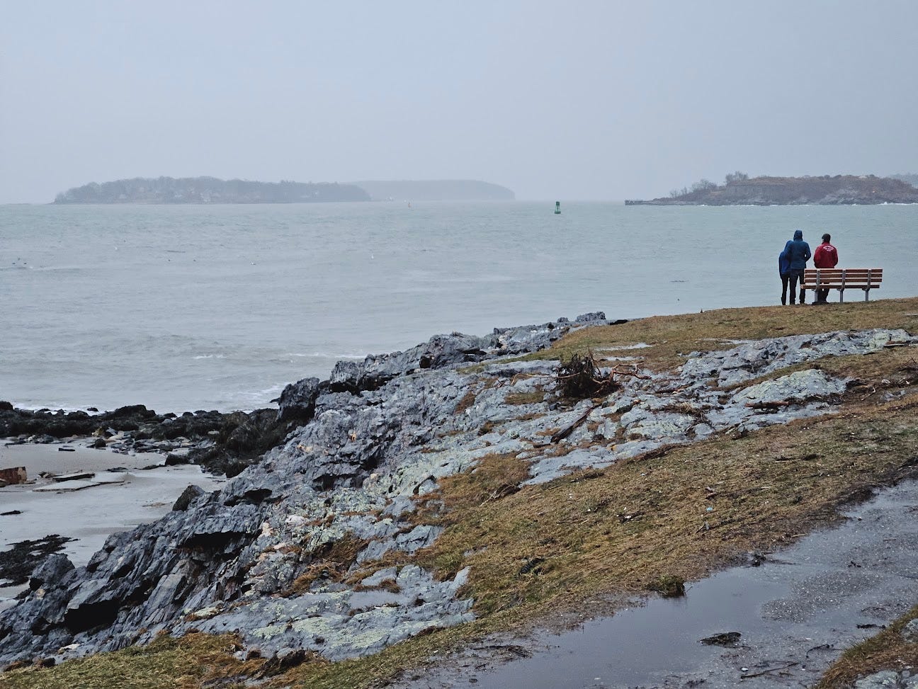 [Today Portland witnessed its highest tides, reaching levels of 14.57 feet. The second highest was the previous record of 14.17 feet set during the Blizzard of 1978, and the recordkeeping began in 1912. This afternoon’s flooding was especially potent as similar flooding occurred only three days ago on the 10th, so many of the usual protections (dunes, seawalls, etc.) were washed out before today’s surge even began. Parks are closed “until further notice” near my home. Most impactful to me is the loss of the three historic fish shacks on Fisherman’s Point at Willard Beach. These shacks have been the destination of my frequent, sometimes nightly, walks in warmer months. Roughly a mile from my home, for years they were the perfect picturesque end goal. Today, around 1pm, all three were claimed by the sea; lifted up off their placements on the point to then float, sink, away from the shore into the bay, into the shipping channel’s depths. Walking over to pay my respects around 4pm, there was scarcely a trace left of them. Some bricks, some chimney fragments, some fragments of wooden beam and concrete slab. They had vanished with the tide. The point was bare, barren. Beautifully so. No scars or gashes. The sea took the shacks away gently. Forcefully, yet without any noticeable damage to the land and rocks they sat upon. Incredible! At first I thought I would feel sad. Then I felt surreal. Then I felt excited, joyous. This land, this place I have known for so long — for my whole life — I now get to have a new, evolved relationship with, a new appreciation for. More of this will happen. Let us welcome it. Let us welcome it all. Every feeling, every sensation, every necessary part that must come undone to make way for what is coming, to make way for the new.