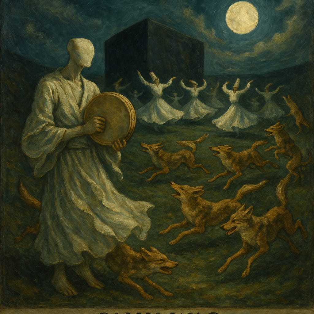 In the company of seven hundred coyotes whirling