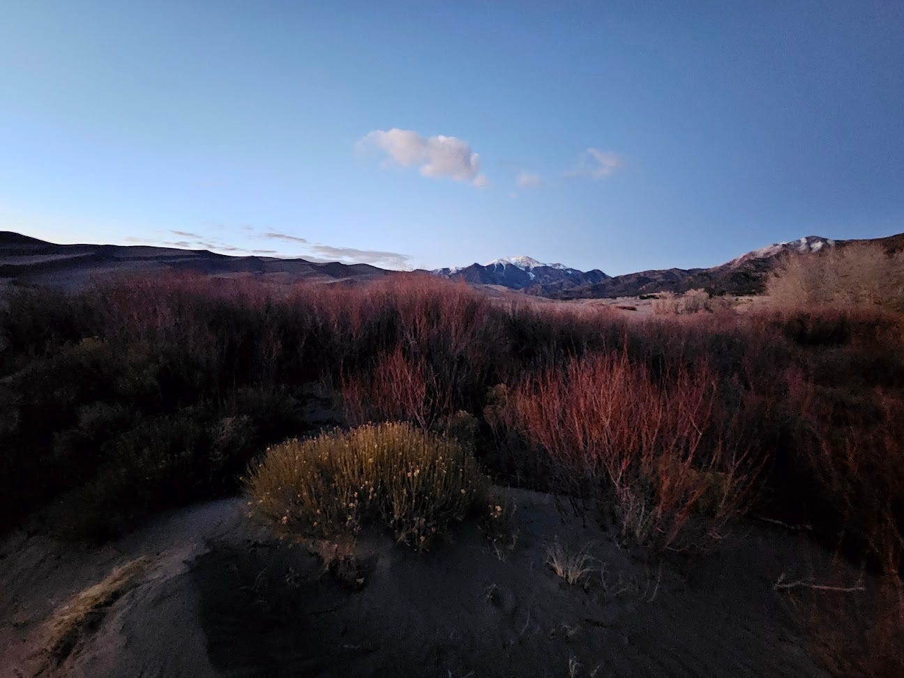 Between towering dune and sky-high Mount