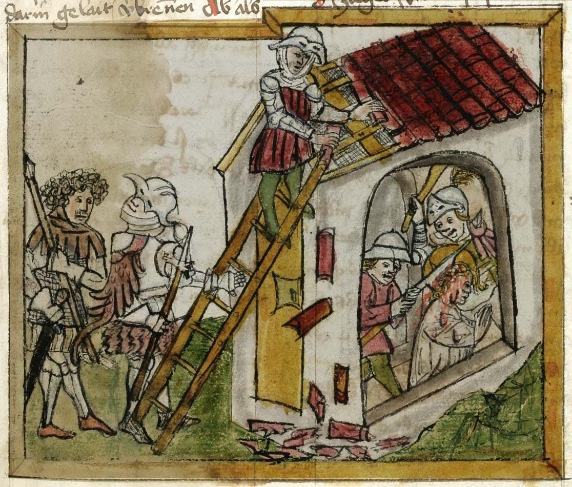 [It has been approximately three weeks since the 23rd Ode came through. And what a three weeks it has been. So many threads and currents. We are all left a bit bedraggled by it, one way or another. From my end, I was successfully able to renovate my debut collection from 33 pieces to 22, and the organization has completely changed, as well as the title. From Odes for a Golden Age to The Burning Tower. Not long after, my beloved 6 year old computer’s SSD harddrive decided to spontaneously fail — while I was in the middle of publishing this ode a couple days ago no less! The dreaded ~blue screen of death~, followed by “A bootable device has not been detected.” I and several clever others have tried our various tricks at resuscitation, to no avail. I am fortunate most of my archive and creative life exists on the cloud or is otherwise backed up. What looks to be lost are my settings, my docx formatting documents, my adobe indesign files, a trove of images, movies, and appdata. I have one more step left before I declare it a total loss and move on. A balancing of achievements, discombobulations, deaths, renewals, griefs, and hope, clarity, ground-seeing. Clearing. Burning is both painful and necessary. Ananke. The compulsion of fate will not yield on this. The goal is not to put out the fire, but to get out of the burning tower(/house). This departure will look different for each of us. Some, like St. Wiborada, will choose to stay and pray for those whose lives will be lost. They accept what comes to them. We can only do what it is we must do — and it is up to us to discover what that is. May it be together. May it be a great and beautiful collaboration! Something the likes of which has been yet unseen. And will not soon be forgotten~ ] Received 2/6/2026 | 2:12-3pm