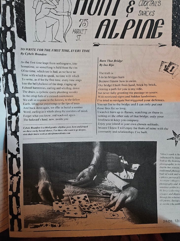 If you have been looking to share your work with the world, I highly recommend submitting to the Dirt! The whole project is a gem, and the editors pure magic. I have contributed three piece since their beginning (in Issues 01, 05, and 07). There is a real vitality here. A vitality of the real~ ] Received 11/16/2024 | 11:35-45am