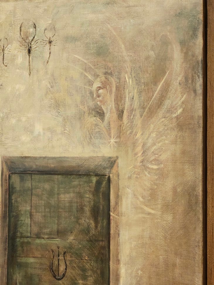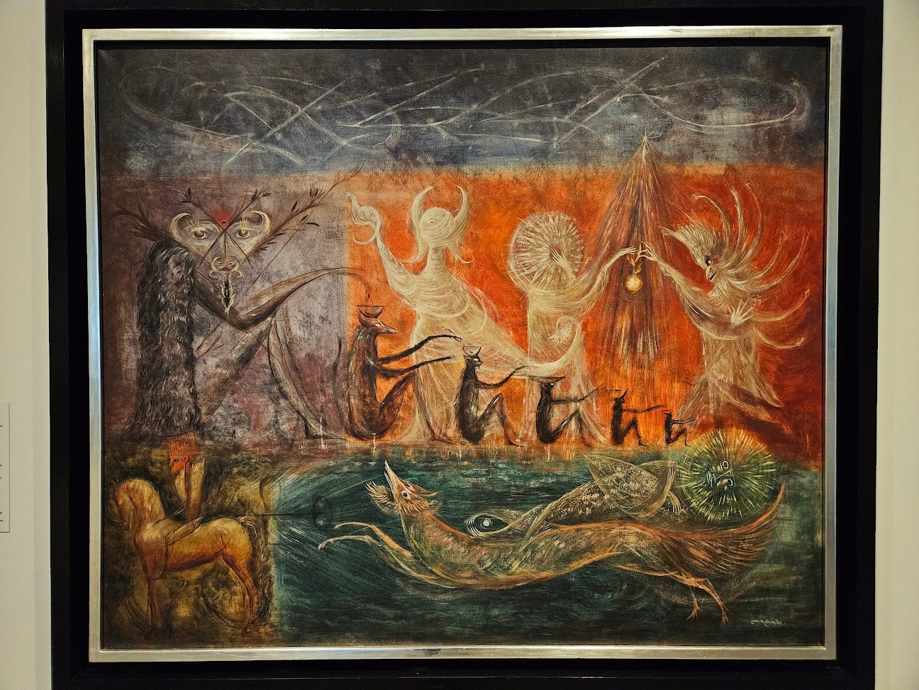 [Today we visited the Rose museum at Brandeis to see Leonora Carrington’s first New England museum exhibition. She is a force, especially in her surrealist trifecta with Remedios Varo and Kati Horna (who was new to me this time, and overwhelmingly wonderful). During the drive back north, this missive arrived on the back of a strong vision~meeting of the ~richly robed walker~, with face of hooded vacuum — a monkish complement to the mirrormaiden who appeared in the last missive, and again today. The figure’s robe was a sort of fracturing, shifting deep blue-ish green sea, emerald and tourmaline night. Inside their deadening vibrance and humming silent oppression emerged an almost Boschian carnival menagerie of characters, somewhat monstrous, eerily bizarre, and somehow not frightening. The spirit of Leonora was certainly alive in it. As M said upon hearing this Missive earlier today — “It’s like a vapor trail”. A fumigation of spirits. A charade~ ] Received 5/15/25 | 3:15-49pm