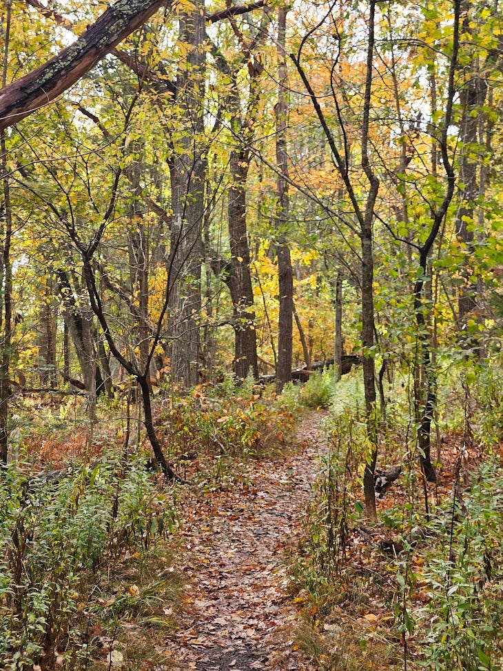 [Another of those beautiful synchronicities came upon seeing which Missive was #15: the labyrinth. When WOODS OF GOLD began, I was transported to the Labyrinth. This labyrinthine vision was a remarkable shapeshifter — what began as labyrinth (no wrong turns) became maze (many dead-ends) became ornate (ornamental) became ordinary (simple stone block walls and worn floors) — all dimensions of labyrinth~maze overlapped and became green, became grey, became gold — washed with light — fumbling in the dark — emerging. There was no terror to be found in the labyrinth, though there was a “dread” horned beast. An almost harplike, or harpsichord-esque music was playing in the background, flowing from somewhere corridors behind me. I was not choosing my path, but I was walking. As if I knew where I was going, but in a way that felt like not knowing. Around this time the lines “a maze of roots / Ornamented towards a goal, toward / A center, an exit, a mosaic” came through, and a part of me wished the word had been ‘labyrinth’ and not ‘maze’. Then a bit later as I prepare to write the foreword, I go to the fifteenth Missive to find LULLS IN LABYRINTHS — which says ‘maze’ only once, in its own foreword, and not in the body of the Missive text. So, the two speak to one another. Complementary. I follow the horned beast then to #74 - MEMORIES OF FUTURE: “The crisp brown leaves brush away to show a face / Worn stone, veined marble and black granite ../.. You must keep on down the road, a ways further / To the open room — a palisade of parallels / From one bright colored room into the next / Led by gentle minotaur with softly rounded nails / Horns ornamented with jewels and gold, the monster / Is not a menace, is a hierophant — showing / The way down a long dark corridor, winding / But without turns.” where we were first introduced to this (now-recurring) character — a gentle minotaur, horns ornamented with jewels and gold, monstrous but not a ‘menace’, rather a hierophantic guide~